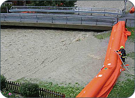 Auch für den provisorischen Schutz bieten sich Schlauchdämme an, insbesondere, wenn Hochwasserschutzmaßnahmen erst in einigen Jahren fertiggestellt werden.