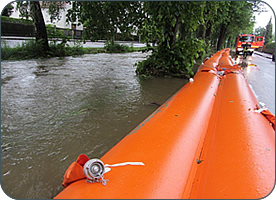 Mit Wasser gefüllte mobile Schlauchdämme könnten das Problem lösen. Mit deutlich weniger Helfern können bei Bedarf in kürzester Zeit hoch wirksame mobile Dämme errichtet werden.